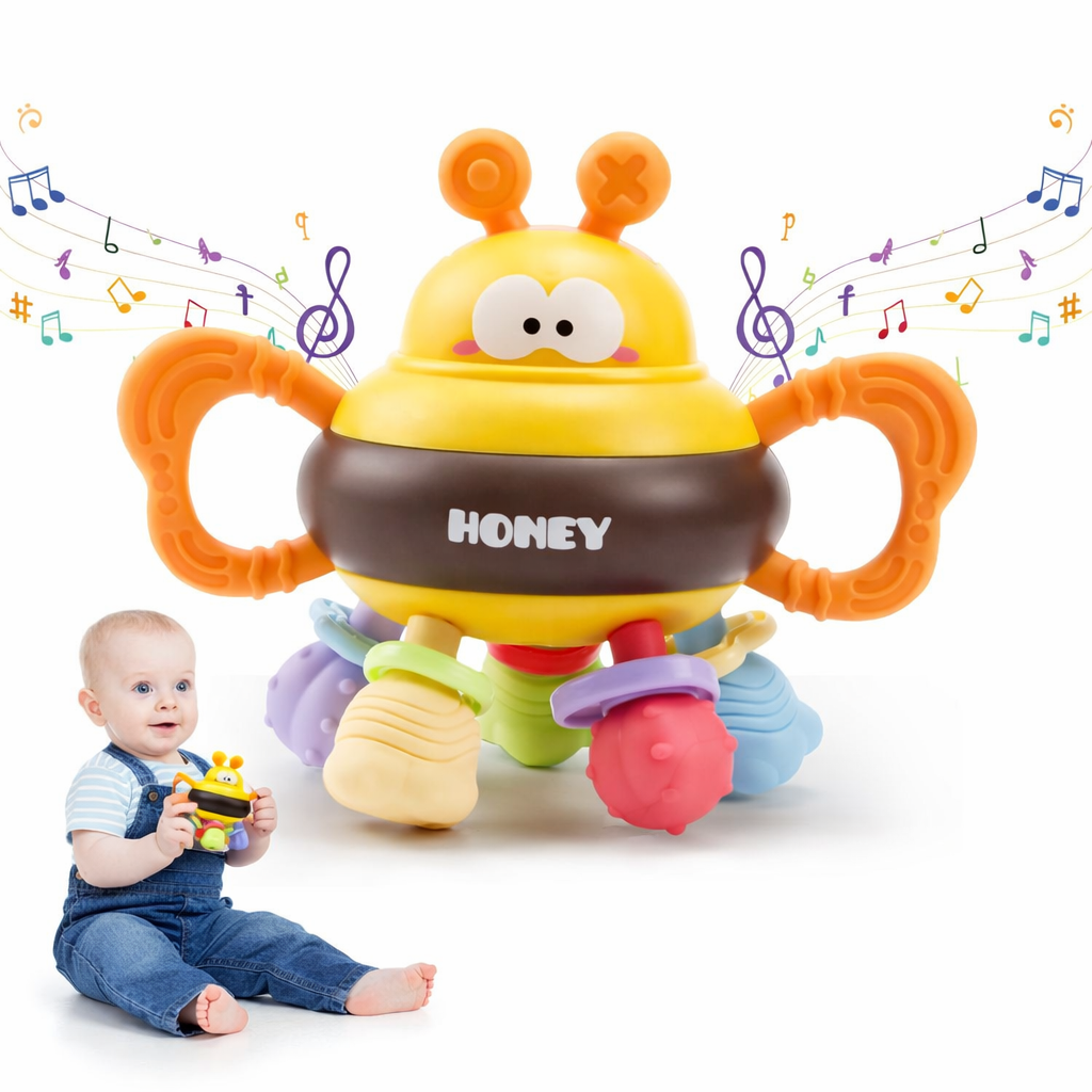 Its bright colors, friendly bee design, and gentle clicking sound during rotation keep babies interested while supporting early learning through play.