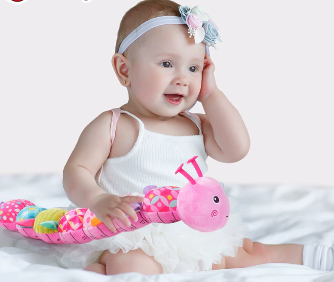 Make tummy time more enjoyable with this adorable plush caterpillar activity toy. Crafted from baby-safe, ultra-soft fabric, it features multiple textures, crinkle sounds, gentle rattles, and musical elements that stimulate your baby’s senses while they explore and play.