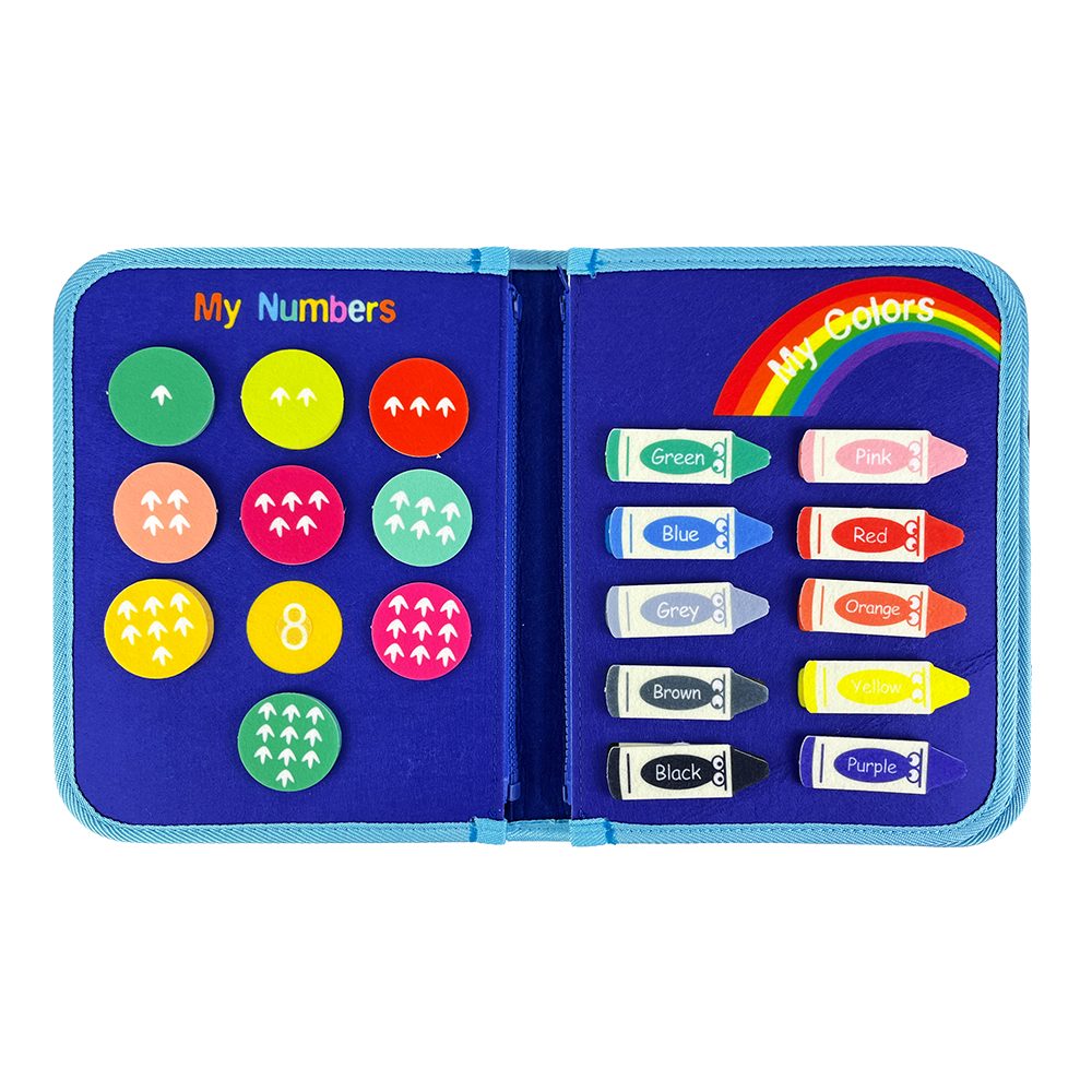 Each page offers a different hands-on activity that supports early learning, fine motor skills, and problem-solving in a playful way. The soft felt material and bright colors make it safe, lightweight, and easy for little hands to use.